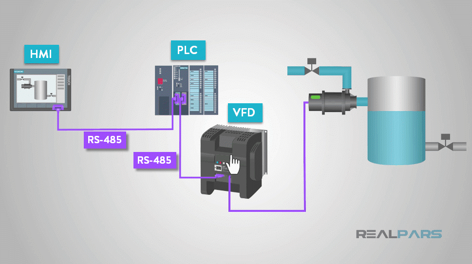 假設(shè)您正在監(jiān)控填充容器的水泵。您認(rèn)為水的填充速度不夠快,無(wú)法滿足需求。使用RS485網(wǎng)絡(luò),您可以從控制中心遠(yuǎn)程監(jiān)控和控制該泵。